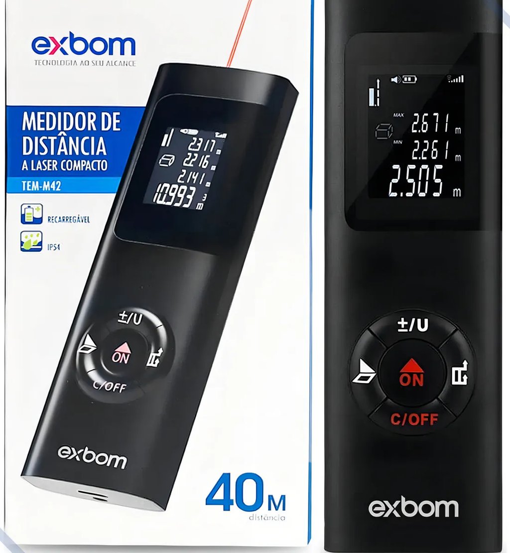 Quem já tentou medir uma parede sozinho com trena comum sabe como é trabalhoso. Eu, Sérgio Kazuo, comecei a usar trena a laser há um tempo e não volto mais. Esse modelo que selecionei aqui é compacto, preciso e mede até 40 metros com um simples clique — perfeito para quem reforma, decora ou simplesmente quer saber se aquele móvel vai caber no canto da sala. Por que eu recomendo Além de medir distância, ela calcula área e volume automaticamente — ideal para quem vai reformar um cômodo e precisa saber quantos metros quadrados de piso ou tinta vai precisar. Tudo aparece no display com iluminação de fundo, fácil de ler em qualquer ambiente. Outro ponto que gostei: ela carrega via USB-C, então não precisa ficar comprando pilha. Tem nivelador de bolha embutido e desligamento automático para economizar bateria. Cabe no bolso e pesa quase nada. Ficha técnica Alcance de medição: até 40 metros Precisão: +/- 2 mm Modos de medição: Distância, Área, Volume e Pitágoras Unidades: metros, polegadas e pés Tempo de medição: 0,1 a 3 segundos Nível eletrônico: 90° Classe do laser: Classe II (635 nm / 1 mW) Carregamento: USB-C Desligamento automático: após 45 segundos sem uso Display com iluminação LED O que vem na caixa 1 Trena Digital a Laser 1 Manual de instruções